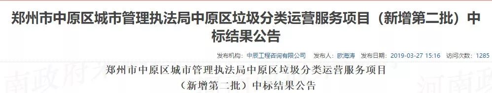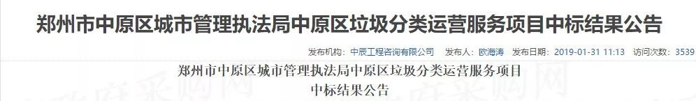 项目名称:郑州市中原区城市管理执法局中原区垃圾分类运营服务项目