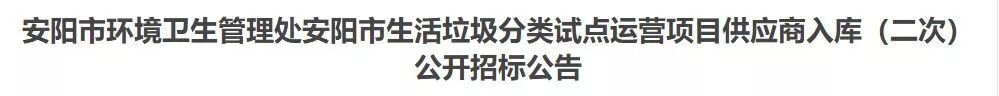 招标项目名称:安阳市环境卫生管理处安阳市生活垃圾分类试点运营项目供应商入库(二次)