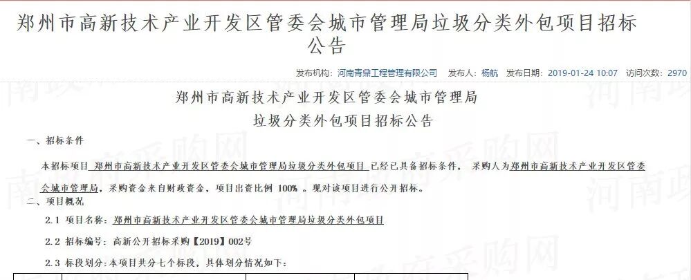 项目名称:郑州市高新技术产业开发区管委会城市管理局垃圾分类外包项目