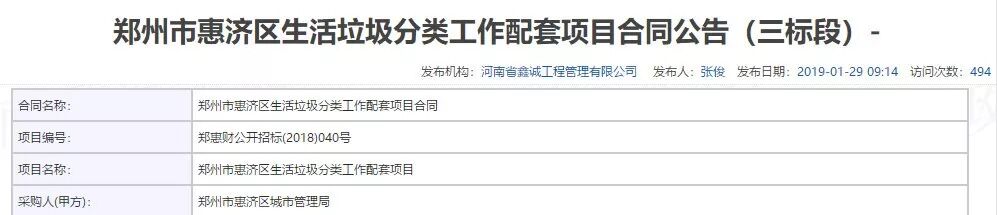项目名称:郑州市惠济区生活垃圾分类工作配套项目一、二、三标段合同