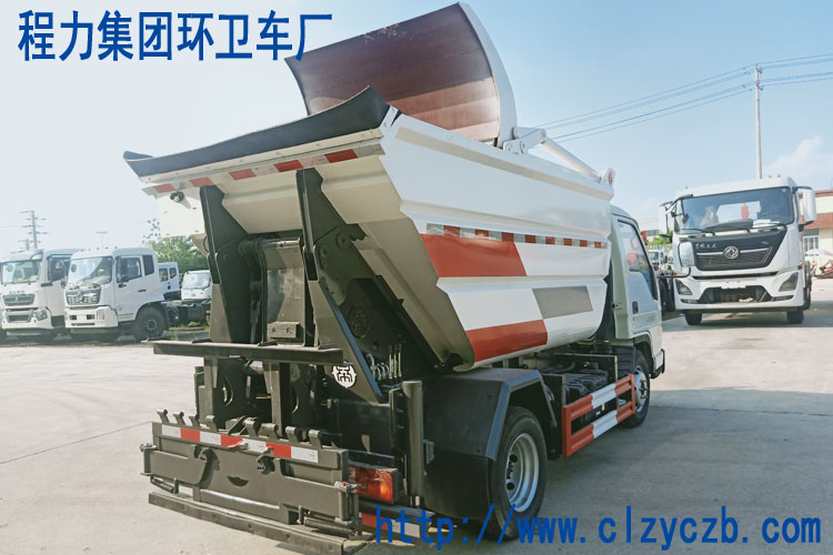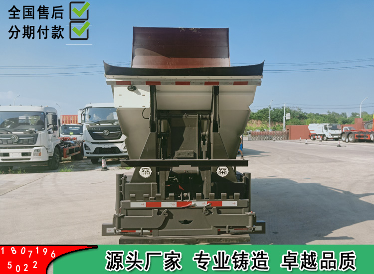 高位自装卸式垃圾车是我公司根据环卫市场需求开发的一种新型垃圾车。由垃圾箱、翻桶机构、举升机构、刮板及滑板压缩机构、液压系统和电气系统等部件组成。具有外形美观、驾驶舒适、操纵方便、机动灵活、可靠性高、运营成本低、上料效率高等特点。 适用于城市、乡镇的垃圾收集转运,箱体采用船型斗结构,彻底解决了垃圾运输过程中的污水滴漏等问题。卸料时高位举升,可与大中型压缩垃圾车、垃圾站完美对接。