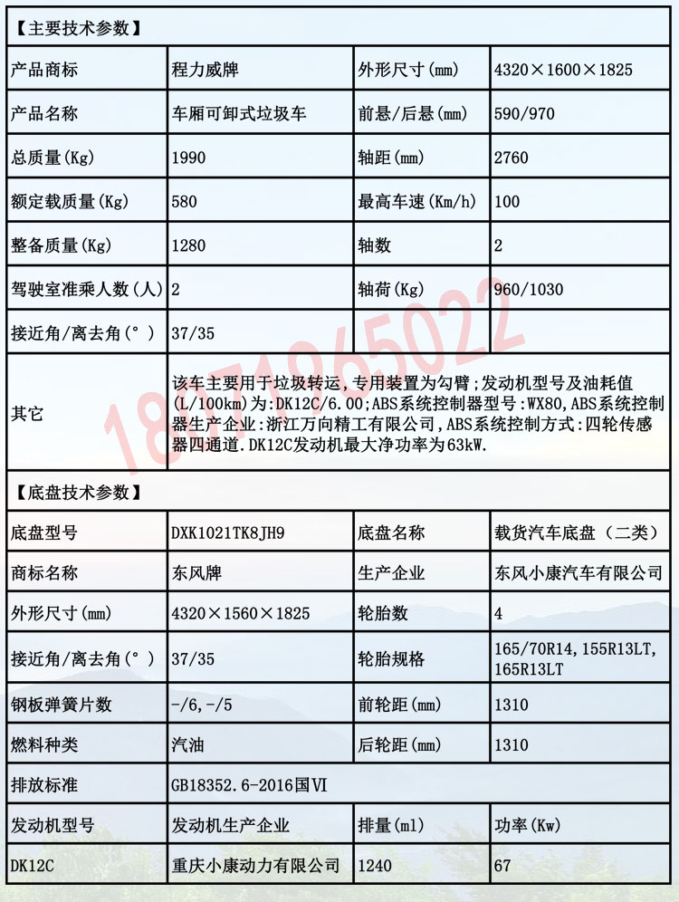 底盘型号: DXK1021TK8JH9