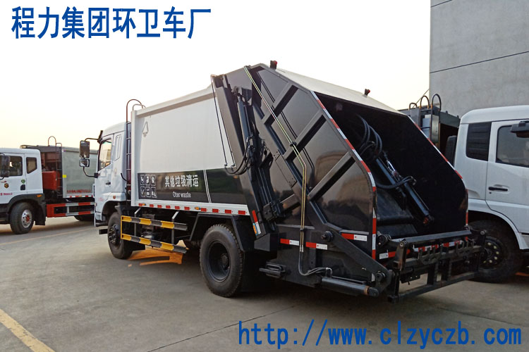 程力专用汽车后装式垃圾车又称压缩式垃圾车,是用于城镇袋装、桶装、散装生活垃圾物的收集、运输、卸料作业的专用车辆,该车是由汽车底盘、箱体、填充器、推板、滑板、刮板、负压板、油缸及多路换向阀等组成。垃圾被车载垃圾推进器又称负压机构推压入车箱,从而使垃圾较高密度、较均匀地分布在车箱内,直至装满为止;该垃圾车的收运方式是目前世界上广泛采用的垃圾收运方式,其专用装置的功能均以汽车发动机为动力,通过液压机构手动或电控来实现。车辆的箱体、装填器又称斗体及污水箱均采用优质炭钢全密封焊接结构,具有强度高、重量轻、不产生二次污染等优点。